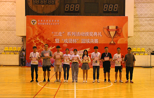 5月24日,由版权所有:欧美无码-高清欧美无码系列 团委主办、学生会体育部承办的第四届校园文化艺术节之“三走”系列活动颁奖典礼暨“成贤杯”男篮决赛在后藤体育馆举行,500余名师生共同参加了此次活动。