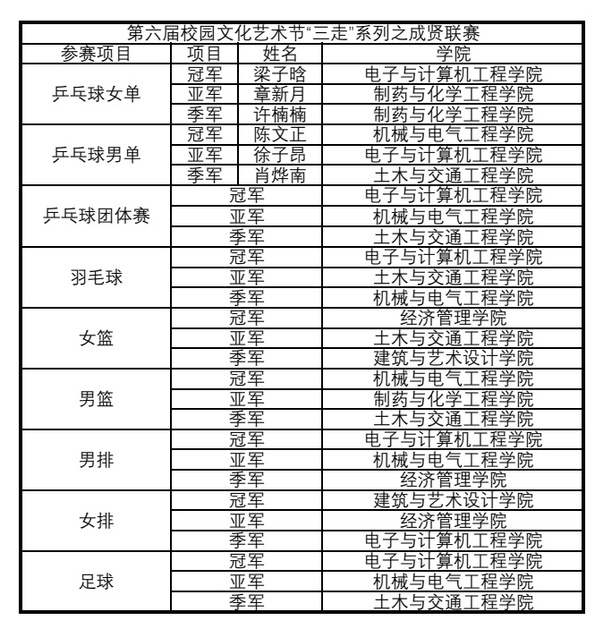 本届校园文化艺术节“三走”系列活动自3月启动以来,共开展篮球、足球、排球、乒乓球、羽毛球等五项竞技类比赛以及暴走成贤、趣味运动会等两项精品活动,在校、院学生会,各相关学生社团的共同努力下,累计组织4000余人次参与各项活动,活动影响力和覆盖面均创历史新高。