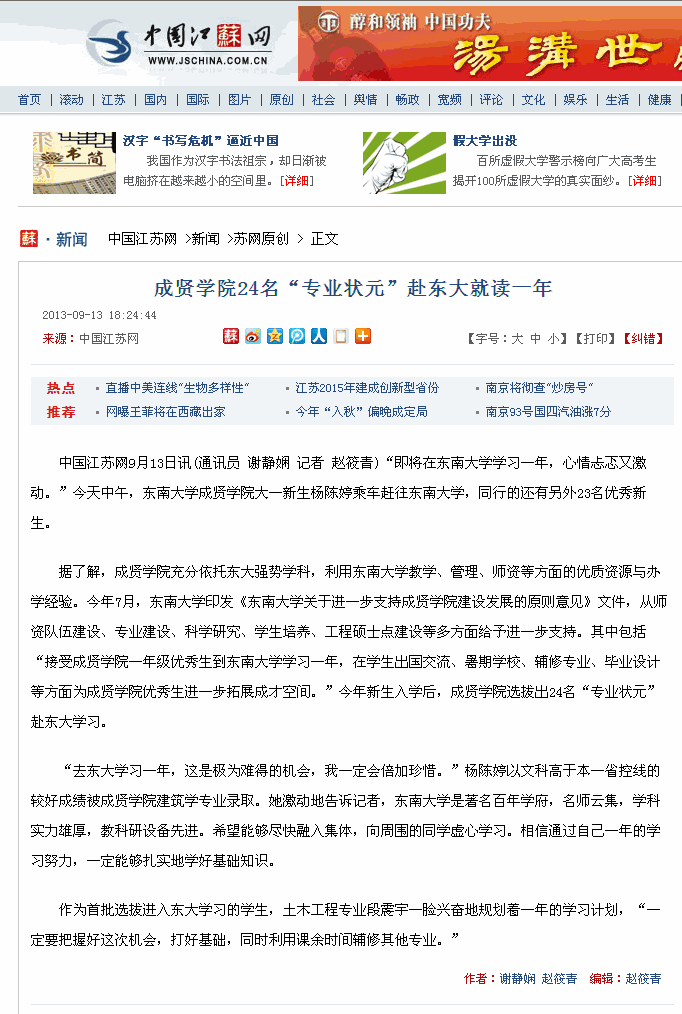 【中国江苏网】成贤欧美无码24名“专业状元”赴东大学习一年