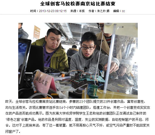 【江苏工人报】全球创客马拉松赛南京站比赛结束