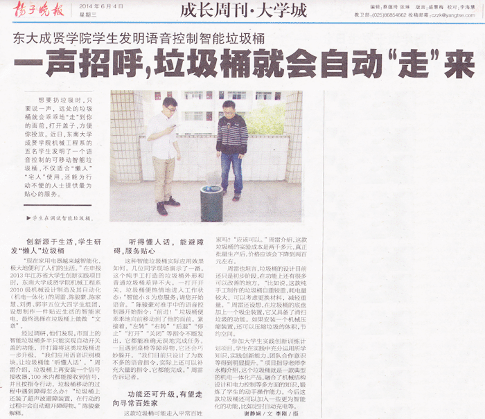 【扬子晚报】东大成贤欧美无码学生发明语音控制智能垃圾桶