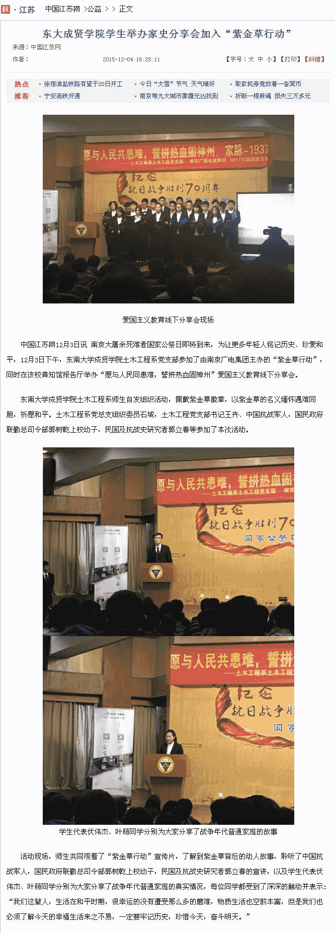 【中国江苏网】东大成贤欧美无码学生举办家史分享会加入“紫金草行动”