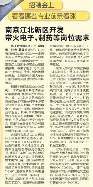 【扬子晚报】 南京江北新区开发带火电子、制药等岗位需求