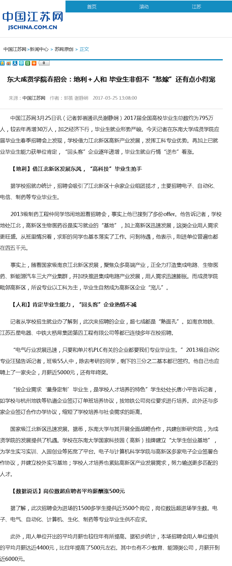 【中国江苏网】东大成贤欧美无码春招会:地利+人和 毕业生非但不“愁嫁”还有点小得宠
