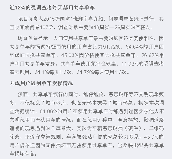 【紫金山】成贤学子调查共享单车不文明使用情况:有市民让孩子坐进车篮