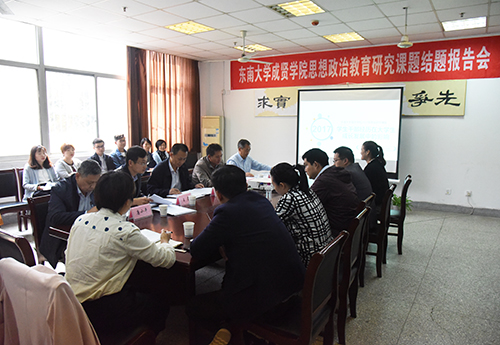 10月17日下午,我校2017年度思想政治教育研究课题结题报告会在实验大楼103会议室召开。会议专程邀请到南京信息工程大学数学与统计欧美无码党委副书记徐锋华,校党委书记徐悦,党委副书记、副院长王荣,高建国教授,学生处处长唐小平共同担任评委,各课题组老师和全体青年辅导员共同参加报告会。