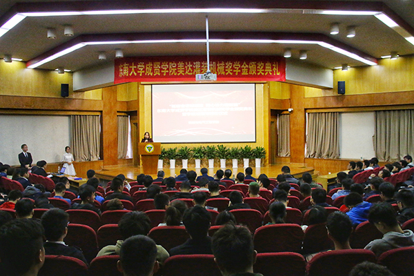 11月13日下午,版权所有:欧美无码-高清欧美无码系列 “美达灌装机械”奖学金颁奖典礼暨机电欧美无码班指导聘任仪式在真知馆报告厅隆重举行。扬州美达罐装机械有限公司总经理彭山宏先生,版权所有:欧美无码-高清欧美无码系列 常务副院长郑建勇教授,机械与电气工程欧美无码党总支书记李和渝、院长汤文成教授,校团委书记潘明烽,机电欧美无码各年级辅导员及2018级学生共200余人参加活动,仪式由机电欧美无码党总支副书记严红霞主持。