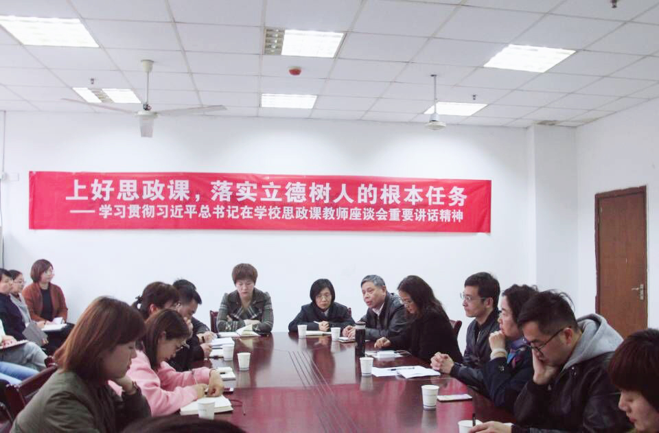 王荣副书记表示,习近平总书记在学校思政理论课教师座谈会上的重要讲话精神,充分体现党中央对思政理论课的高度重视,以及对思政理论课教师队伍的高度重视,让所有从事思政教育工作的同志倍感振奋,思政课教师要提高教学、科研水平,认真学习贯彻落实好总书记的重要讲话精神。同时,他提出下一步工作要求:一、思政课教师应加强学习,特别是习近平新时代中国特色社会主义思想的学习,提高自身修养,如总书记所说用高尚的人格感染学生、赢得学生,用真理的力量感召学生,以深厚的理论功底赢得学生;二、学校思想政治工作是做人的工作,要围绕学生、关照学生、服务学生,坚持把立德树人贯穿整个教学过程,要让思政课充满活力魅力四射;三、思政教师队伍要结合习近平新时代中国特色社会主义思想和我校实际情况,共同探索教学规律,寻找符合成贤学生特点的教学方法,真心让思政课成为学生真心喜爱、终身受益的课程。