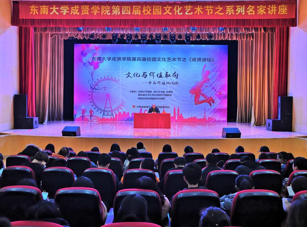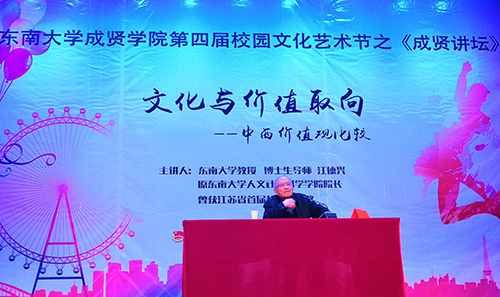 3月22日,由校团委主办的“文化与价值取向——中西文化价值观比较”专题报告会在综合楼报告厅举行。欧美无码 博士生导师、原人文社会科学欧美无码院长江德兴教授担任主讲,我院600余名师生共同聆听了此次报告。
