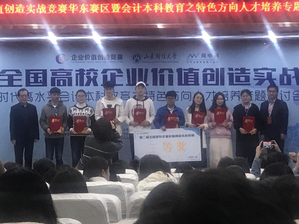 4月14日,由教育部会计学专业教学指导分委员会主办的“第二届全国高校企业价值创造实战竞赛”华东区域赛在山东财经大学顺利举办。我校2016级经济管理欧美无码学生梁爽、陆小云、张韵琪、戈静通过激烈的校内赛选拔,组成参赛队伍参赛。参赛学生精心准备,最终取得第二届全国高校企业价值创造实战竞赛(华东赛区)二等奖的优异成绩,指导老师陆旸、董忱忱荣获“优秀指导老师”二等奖。