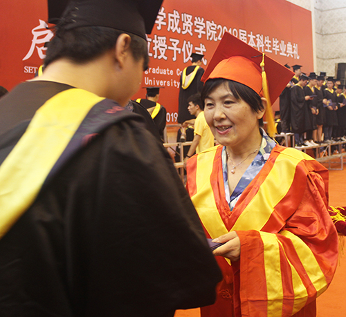 党委副书记、成贤学院院长郑家茂为优秀毕业生代表颁发荣誉证书