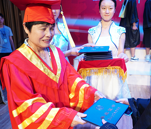 父母恩情似海深,家长代表王革女士在发言中表达了对成贤学院领导与教师的感谢,同时寄语毕业生们在今后的工作、生活和人生中,时刻怀有感恩之情,继续以他人为师,以社会为师,以贤达者为师,在不断学习中升华自己。