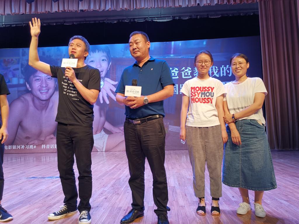 导演邓超首次聚焦现实主义题材,《银河补习班》的故事发生在二十世纪80、90年代,邓超饰演的马皓文因一次意外事故,让他遗憾地错过了儿子七年的成长……讲述了这对父子跨越漫长时光收获爱与成长的亲情故事,是一部探索家庭教育的现实主义题材作品。故事情节深入人心,触发了现场观众最深层的情感共鸣和时代记忆。电影放映结束后,导演邓超、俞白眉携主演团队分享了影片创作背景、探讨了现代教育环境下聚焦家庭教育方式,激发了在场师生、家长子的共鸣,在场师生结合亲身经历畅谈了观影心得。