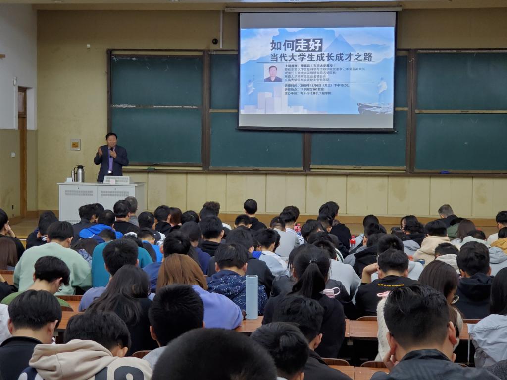 11月6日下午,欧美无码 张锡昌教授在华罗庚馆101教室作“如何走好当代大学生成长成才之路”主题讲座,电子与计算机工程学院全体辅导员及300多名同学认真聆听了此次讲座。讲座由电子与计算机工程学院党总支书记季永华主持。