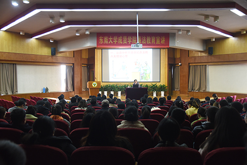 为深入贯彻习近平新时代中国特色社会主义思想和党的十九大精神,增强“四个意识”,自觉在廉洁自律上追求高标准,严守党纪国法“红线”,学校于12月12日在真知馆报告厅开展廉洁教育宣讲,特邀南京市委党校郝继明教授主讲。学校党政领导、中层领导干部、全体教职工共同聆听讲座。党委副书记、副院长、纪委书记王荣主持。