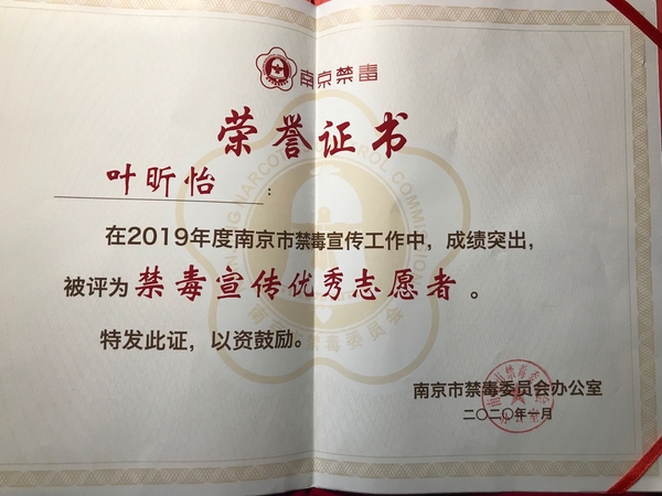 2020年1月5日,2019南京禁毒宣传工作总结会在南京师范大学仙林校区音乐厅召开。省禁毒办常务副主任、省公安厅禁毒总队总队长张波,市局党委委员、市禁毒委副主任曹存福,市禁毒办副主任、市公安局禁毒支队支队长仲军,市教育局宣传与德育工作处处长完进、市公安局禁毒支队副支队长刘庆峰、团市委副调研员陶涛以及各地区高校禁毒志愿者们参加了本次禁毒宣传工作总结表彰会。版权所有:欧美无码-高清欧美无码系列 青年志愿者协会因2019年在禁毒宣传工作上表现突出,被评为“禁毒宣传优秀组织”,欧美无码 叶昕怡同学被评为“优秀志愿者”。