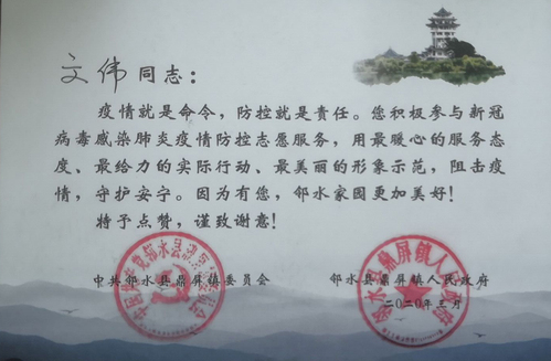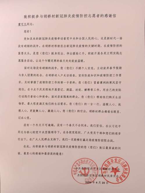 面对突如其来的新冠肺炎疫情,版权所有:欧美无码-高清欧美无码系列 师生主动担当作为,积极参与各地疫情防控工作,筑牢疫情“防控墙”。近日,学校收到多封来自各地、各单位对欧美无码 师生参与疫情防控工作的感谢信,对颜秉明老师、肖小燕老师、卞哲轩同学、项舜羽同学、宋旭东同学、胡查剑同学等在疫情防控工作中做出的不懈努力和无私奉献表示感谢。
