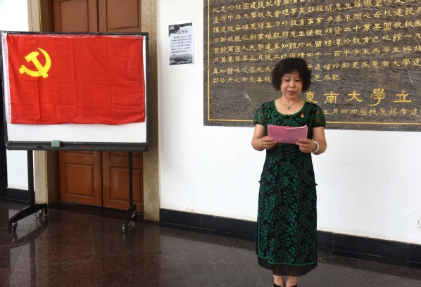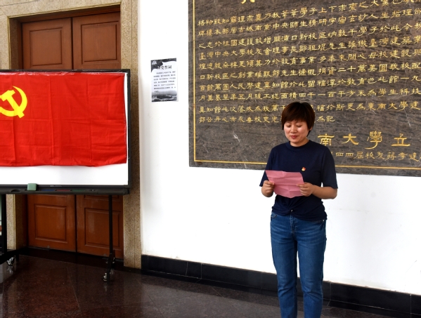 611日上午,机关党总支学工党支部在真知馆大厅举行新党员入党宣誓仪式,仪式由学工党支部组织委员颜秉明主持。校党委副书记、纪委书记、副院长王荣参加宣誓仪式。