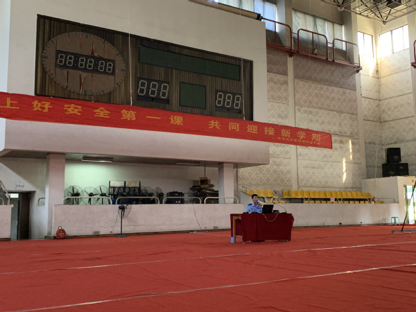 秋高气爽,微风习习,又是一年新生入学季。2020年9月19日下午3点,院保卫处、2020级新生军训团于2020年9月19日下午在后藤体育馆开展主题为“上好安全第一课  共同迎接新学期” 的安全知识讲座活动。