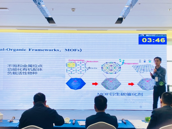 在比赛现场,黄诚老师以《C-H键先进氧化技术及其农药中间体合成应用基础研究》为题,展示了近年来在金属有机框架材料催化氧化C-H键并应用于农药关键中间体生产等方面所开展的研究工作。该项目突破了现有农药生产高污染、高排放的瓶颈问题,为农药关键中间体的生产提供环境友好的新方法,开辟了农业化学的新途径,为绿色化学、原子经济打下了良好的理论与实践基础,具有显著的社会效益和经济效益。