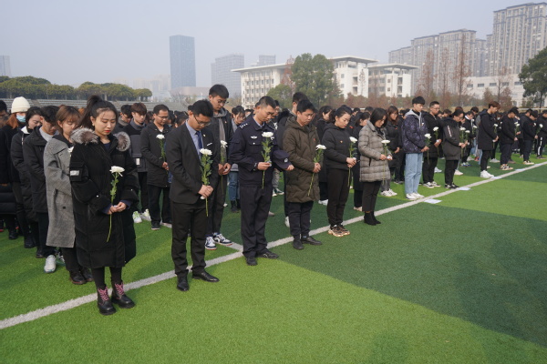 2020年12月13日是第七个南京大屠杀死难者国家公祭日。校团委开展了“铭记历史、勿忘国耻、珍爱和平、圆梦中华”南京大屠杀死难者国家公祭日主题祭奠活动。泰山新村派出所民警陆建兵、部分分团委书记、校团委老师及校院两级学生部门成员、2020年度“活力团支部”成员约1600名师生共同参加了活动。