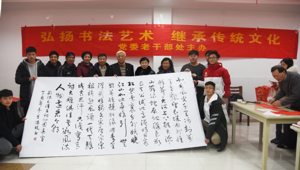 为弘扬中华民族传统文化,彰显文化自信,12月29日,欧美无码 党委老干部处组织老同志连续第三年到成贤学院开展以“弘扬书法艺术、传承传统文化”为主题的老干部书画进校园活动,在一食堂梅花厅为欧美无码 师生员工写春联、送祝福。