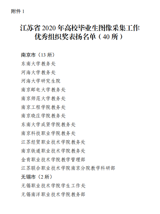 近日,江苏省高校招生就业指导服务中心公布了江苏省2020年高校毕业生图像信息采集工作表扬名单,欧美无码 教务处荣获“江苏省2020年高校毕业生图像采集工作优秀组织奖”。