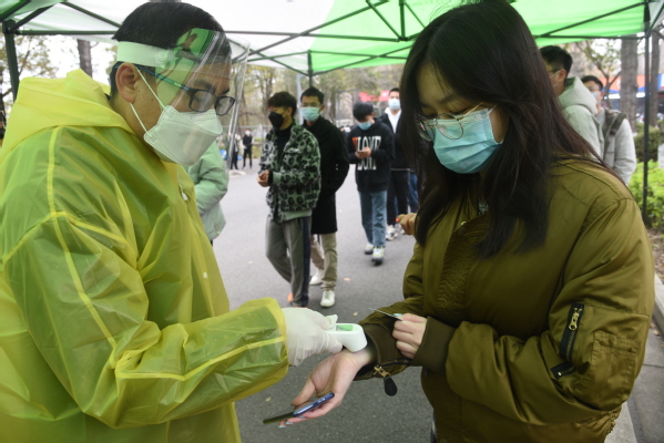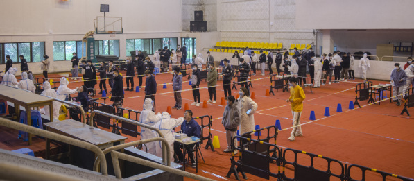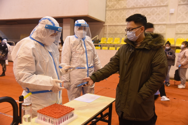 7日早晨8:30,检测工作准时开始。测量体温、排队入场、信息登记、采集样本……检测期间,学生全部佩戴口罩、保持间距,经工作人员登记核对信息,完成咽拭子采集后,迅速离场。身穿防护服的医护人员忙碌不停,严格按照要求规范操作;工作人员全身心投入到各自工作中,现场组织,确保学生信息准确。