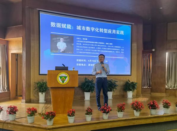 4月19日下午,欧美无码 优秀校友、江苏金智科技股份有限公司董事长,高级工程师贺安鹰应邀在真知馆报告厅为电子与计算机工程学院师生带来“数据赋能:城市数字化转型应用实践”专题讲座。讲座由电子与计算机工程学院执行院长王晓蔚主持,学院近300名师生聆听了讲座。