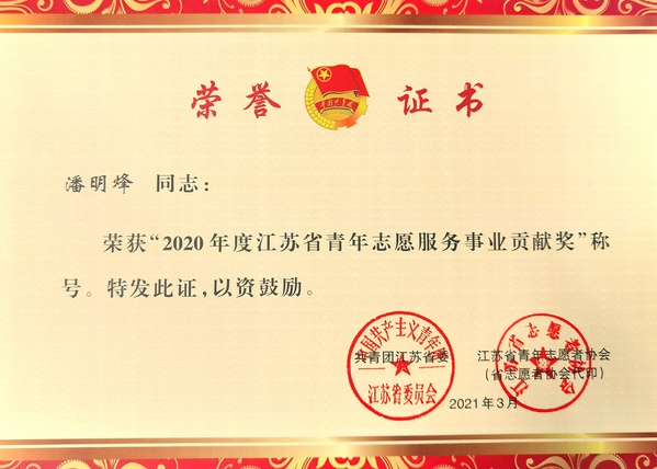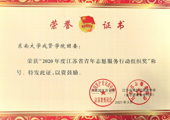 欧美无码 获“2020年度江苏省青年志愿服务行动组织奖”
