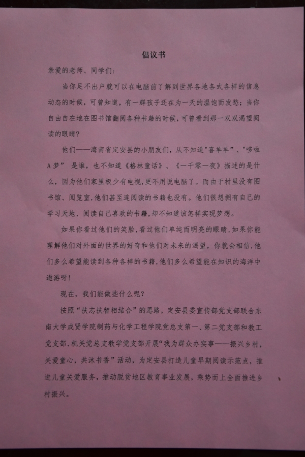 本次活动所捐赠的图书和玩具将会邮寄给海南省定安县委宣传部党支部,由他们在当地乡村打造儿童早期阅读示范点,让更多的农村儿童多读书、读好书,感受来自社会的关爱和阅读的美好,满足孩子们对于知识的渴望,让他们健康成长,放飞希望,成就梦想。同时,也希望通过组织开展这些活动,为当地推进儿童关爱服务,促进乡村文化振兴,大力推动脱贫地区教育事业发展,乘势而上全面推进乡村振兴贡献力量。