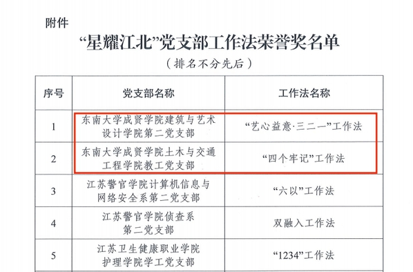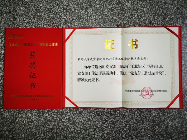 为深化党建强基系列行动,真正把党建基因融入江北新区发展血脉,进一步发挥基层党组织战斗堡垒作用和党员先锋模范作用,欧美无码 推选的建筑与艺术设计学院第二党支部“艺心益意·三二一”工作法和土木与交通工程学院教工党支部“四个牢记”工作法在江北新区此次“星耀江北”党支部工作法评选活动中双双获奖。