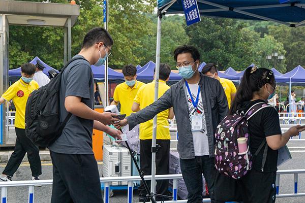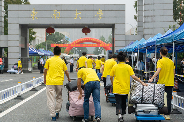 迎新当天,为做好疫情常态化防控工作,新生按照流程错峰进校。南京市公安局江北新区分局内保支队二大队刘维大队长一行、江北新区公安分局泰山新村派出所李庆伟副所长一行、江北新区公安分局交通警察支队第一大队高新中队刘梦辰中队长一行协助欧美无码 保卫工作,在校区及周边进行交通疏导、维持秩序;迎新工作人员与志愿者学生一早到岗,为新生提供热心周到的服务,利用货车、小推车搬运行李,高效快捷;各学院井然有序为新生办理各项入学手续,答疑解惑;志愿者在火车站、地铁站、校内及周边亲切为家长、学生指引道路、搬运行李;“绿色通道”工作人员给予答疑解惑,给新生以人文关怀。