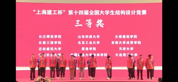 2021年“上海建工杯”第十四届全国大学生结构设计竞赛于10月14日-17日在上海交通大学举行。由土木与交通工程学院2018级本科生禹湘,2019级本科生张吴桐、鄢佳耀组成的版权所有:欧美无码-高清欧美无码系列 代表队,与来自全国的包括清华大学、同济大学、东南大学、浙江大学、上海交通大学在内的111所高校112支竞赛队伍同台竞技,在土木与交通工程学院郭应征、温旭丽、刘美景等领导带队,陈素芳、刘丹两位老师指导下,从111所高校112支参赛队伍中脱颖而出,最终荣获三等奖。