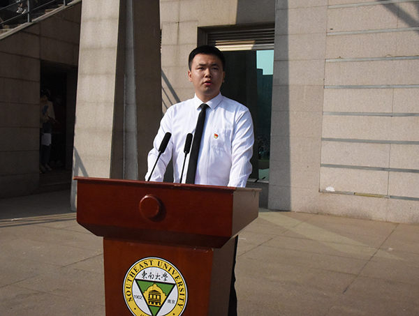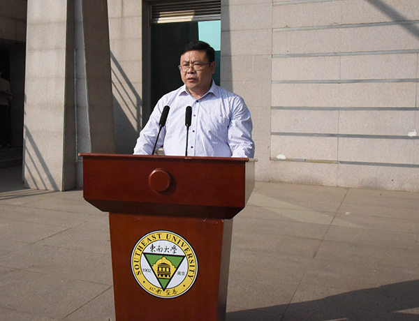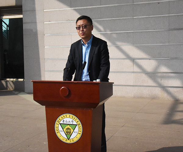 学院教学督导组组长、电子与计算机工程学院计算机专业负责人翟玉庆教授代表全体教师发言。翟玉庆教授从事教育工作以来,一直用他的言传身教影响着学生,深受学生喜爱。他希望在座的每一位学生做知识、能力、素质协调发展的人,通过适当的学习方法学到知识,把知识运用到实践并转换为成长进步的能力,成长为具有高素质高品质的人才。