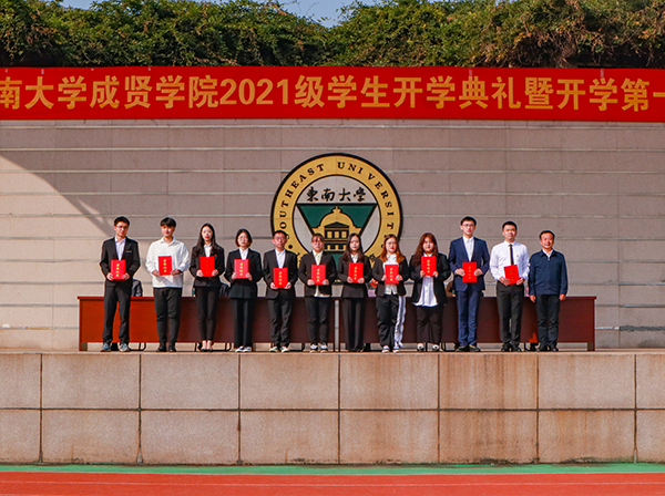 常务副院长许映秋宣读获得2021年度江苏省表彰的三好学生、优秀学生干部和先进班集体的喜报。郑家茂院长为获奖学生和集体代表颁奖。
