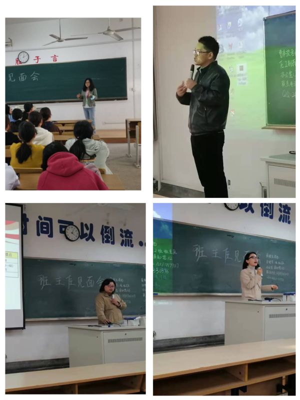 四位班主任首先进行了自我介绍,“高数担当”“生活导师”“情感专员”“学习向导”等活泼的语言迅速拉近了班主任与同学之间的距离。董院长为大家详细解读了专业人才培养方案、课程设置等内容,并勉励同学们做一个知识、能力和素质全面发展的人,真正做到不负韶华、逐梦人生;章老师给同学们梳理了中学和大学在学习、生活等方面的区别,引导大家快速适应大学生活;徐老师为大家详细介绍了大学生手册中学籍管理、学分制管理、学士学位授予等与教学相关的内容。见面会最后,对同学们普遍关心的考研、专业学习等方面的问题,各位班主任老师耐心细致地进行了解答。
