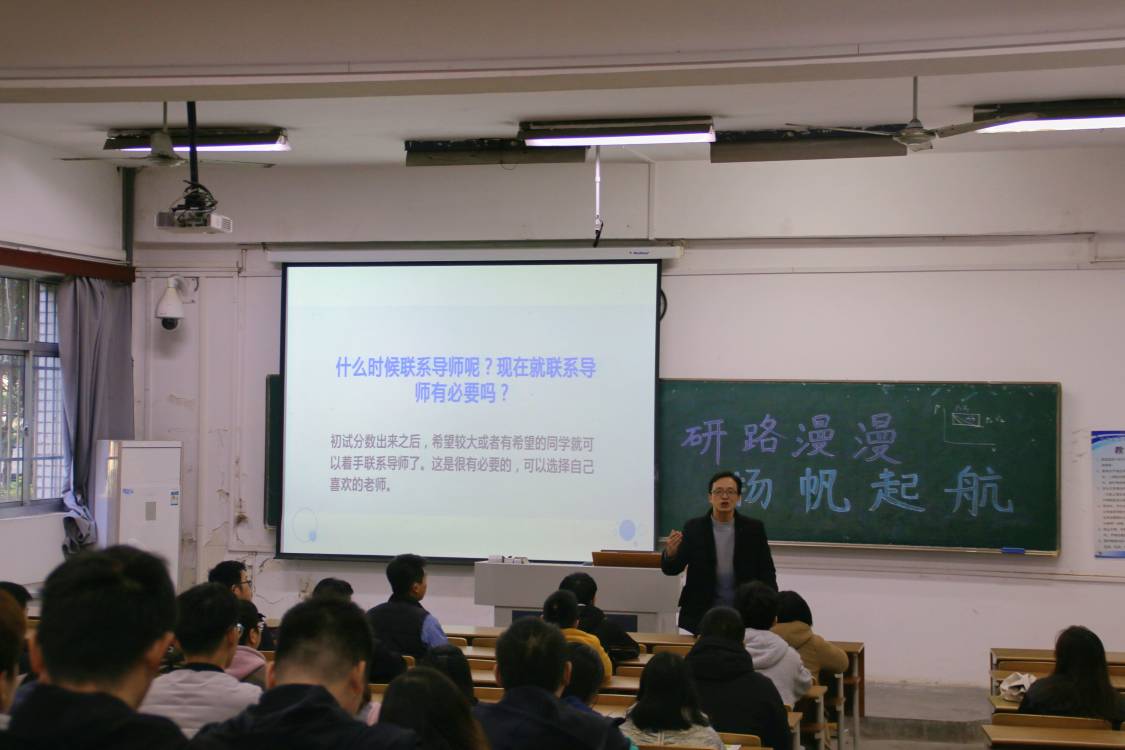 在此次讲座中,张一卫教授为同学们指明了考研之路。首先,张教授讲解了研究生考试的考核形式和考试难度,以欧美无码 、常州大学、南京工业大学的院校招生专业目录为例,强调了专业课程在考研中的重要地位。其次,张教授向同学们分享了考研相关科目的复习方法,依次指出在政治英语和数学三门公共课以及专业课程的复习中需要注意的各个方面。张一卫教授从考生的角度出发,提出了选择导师的三个方面和联系导师的方式。最后,张教授从学习和生活两个方面给同学们提出了真挚的建议,鼓励同学们奋发进取,砥砺前行。