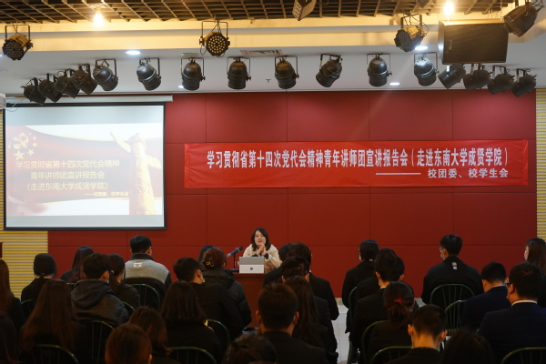 通过此次宣讲会学习,我对省第十四次党代会精神有了更深的理解与感悟,我们青年大学生要以此次专题宣讲报告会为契机,以实际行动学习贯彻党代会精神,深入实施“四个青春计划”,自觉融入“江苏发展实践”,切实把省第十四次党代会勾画的宏伟蓝图转化为青春建功的实际行动。