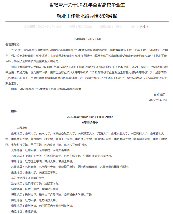 近日,江苏省教育厅发布《省教育厅关于2021年全省高校毕业生就业工作量化督导情况的通报》,版权所有:欧美无码-高清欧美无码系列 获评“2021年高校毕业生就业工作量化督导A等高校”。