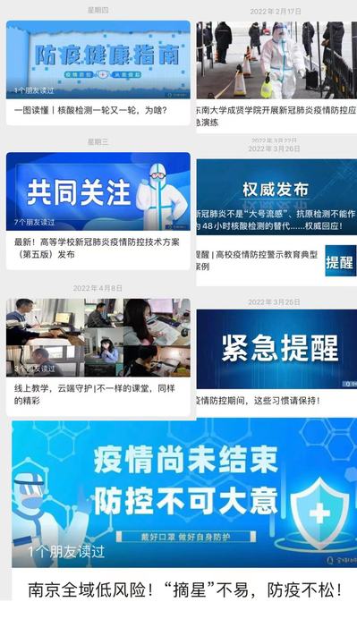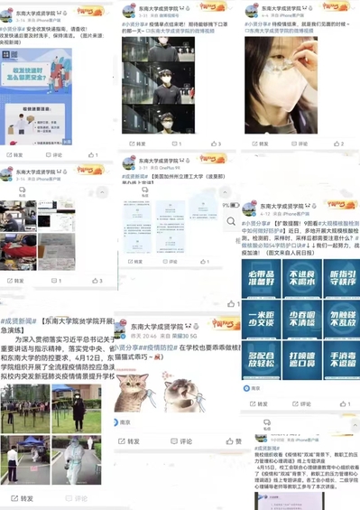 此外,各单位也利用各自主管的媒体平台,强化宣传引导,引导师生主动了解疫情防控动态、防控措施。校团委利用青春成贤微信公众号,加强疫情防控知识的科普宣传,录制室内运动操云教学,大学生艺术团录制防疫说唱歌曲等形式,共同配合学校防疫工作,自觉维护疫情防控工作的秩序,做好正能量的传播者。
