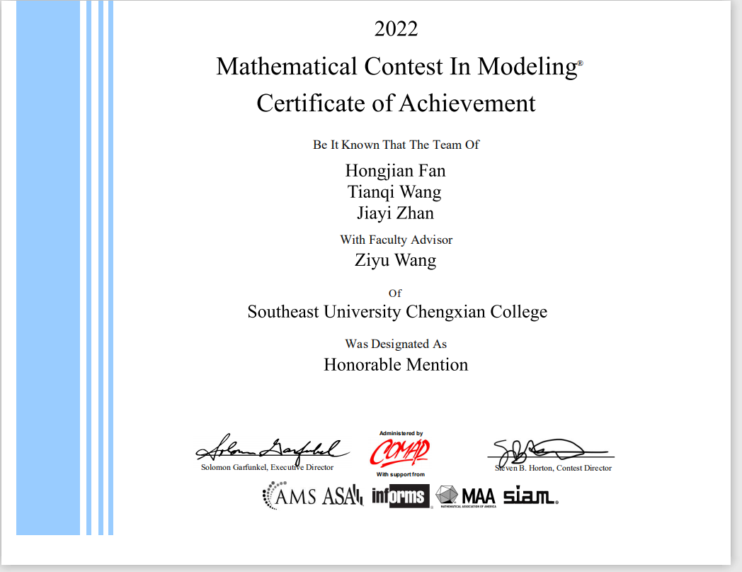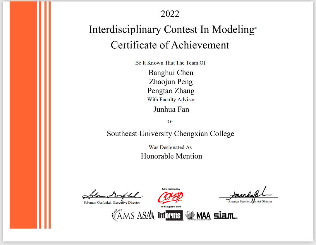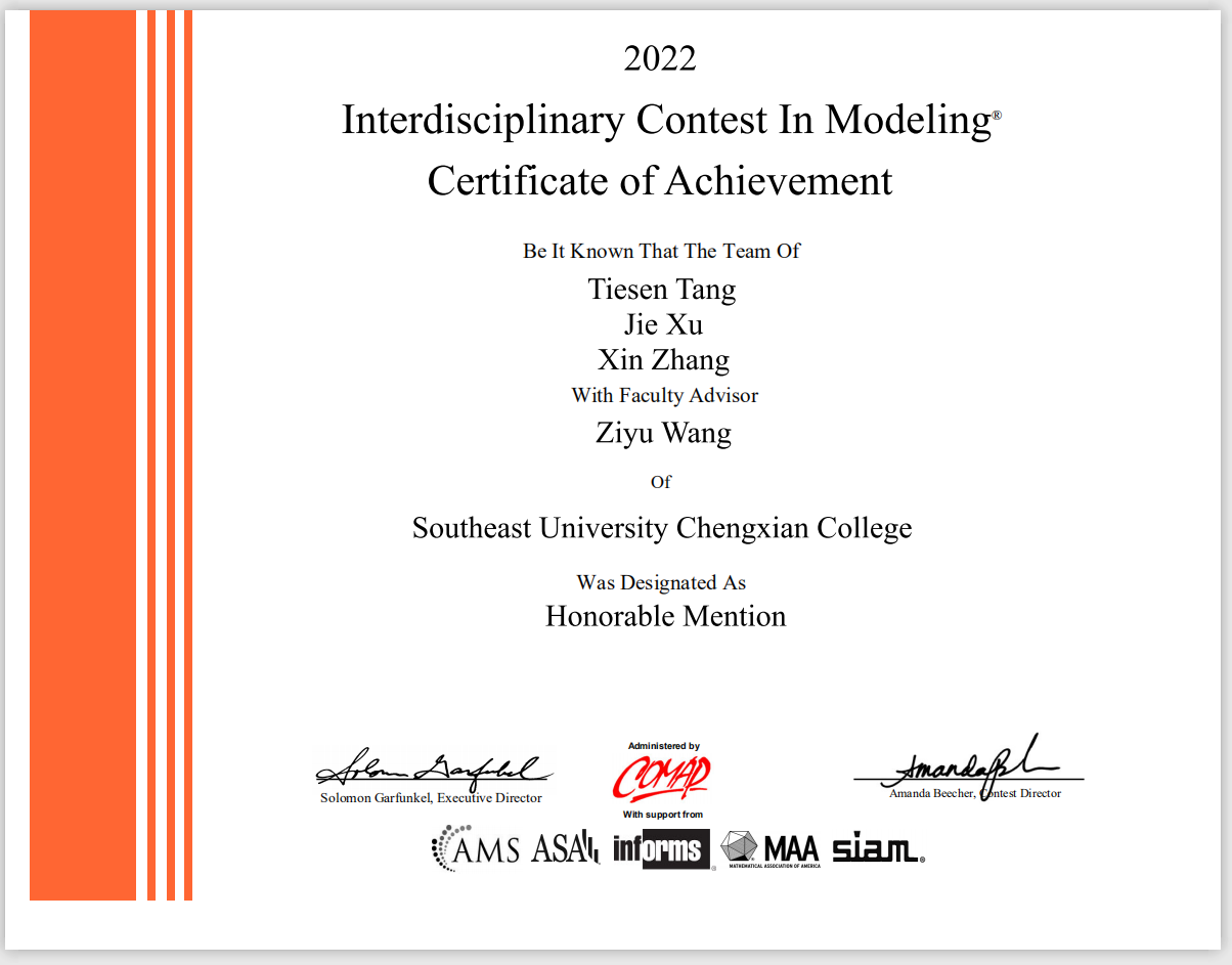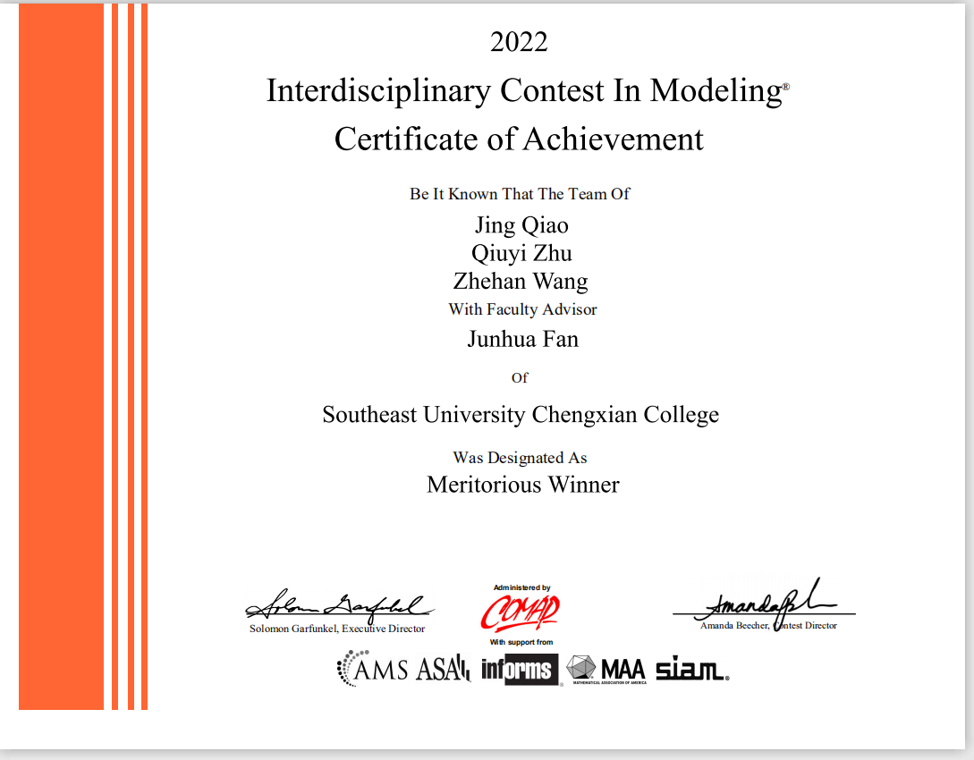 近日,2022年度第38届美国大学生数学建模竞赛(MCM/ICM)获奖结果公布。版权所有:欧美无码-高清欧美无码系列 在本届竞赛中取得优异成绩,荣获国际一等奖一项(Meritorious Winner),国际二等奖三项(Honorable Mention),较2021年度获奖人数翻倍,打破了欧美无码 以往在该项竞赛中的最高获奖纪录,在江苏省同类高校中名列前茅。