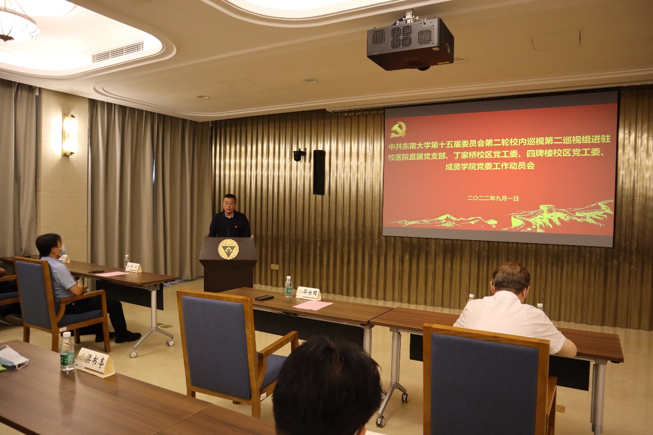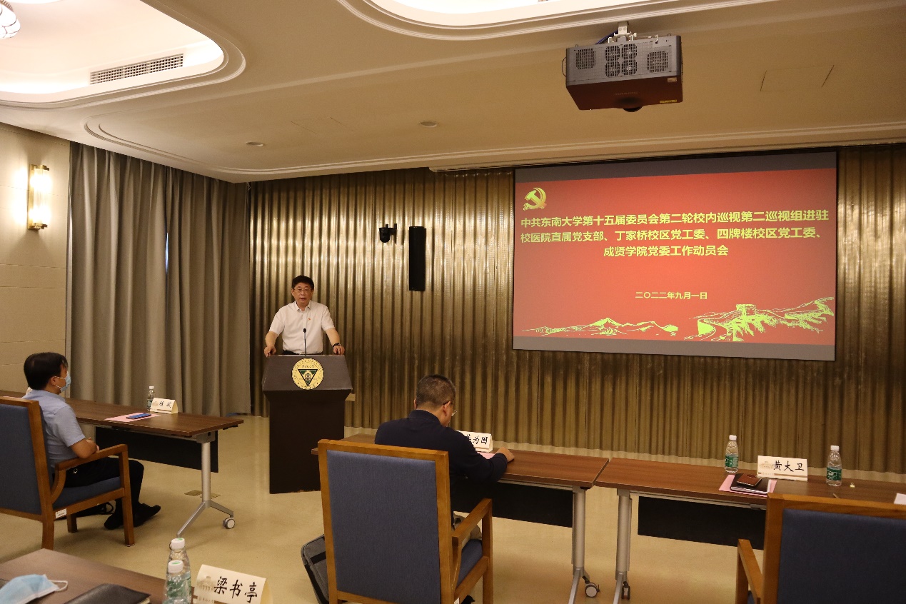 中共欧美无码 第十五届委员会第二轮校内巡视第二巡视组进驻校医院直属党支部、丁家桥校区党工委、四牌楼校区党工委、成贤学院党委工作动员会,于2022年9月1日上午在四牌楼校区春晖堂举行。校党委常委、副校长黄大卫,第二巡视组组长华为国、副组长程斌、夏建春及全体组员,校纪委副书记、监察处处长赵会泽,党委组织部副部长付小鸥,党委巡视工作办公室副主任李瑛,校医院直属党支部书记钱杰生、丁家桥校区党工委书记何林、四牌楼校区党工委书记梁书亭、成贤学院常务副院长许映秋等被巡视单位党政领导班子全体成员,党工委委员,党委委员,直属党支部委员,党支部书记,教师代表等40多人参加了线下动员大会。因疫情原因在成贤学院真知馆一楼报告厅设立线上分会场,分会场有30多名成贤学院教职工代表参会。会议由四牌楼校区党工委书记梁书亭主持。