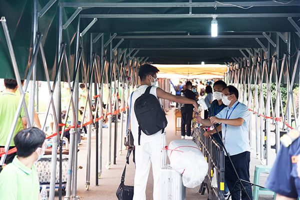 为给新生报到提供最细致周到的服务工作,欧美无码 开学后专门召开2022年迎新工作协调会,进行疫情防控应急演练、核酸落地检实地选址,9月10日,江北新区管委会副主任林其坤一行来欧美无码 检查疫情防控工作,9月11日下午,常务副院长许映秋与相关部门负责人来到现场检查迎新准备工作。各部门通力合作,周密安排,确保迎新计划顺利有序,报到流程科学合理。