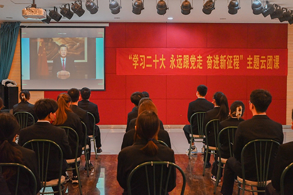 本次主题云团课共分为六个篇章,通过学者讲述、沉浸场景、互动交流等形式,带领大家全方位学习、解读党的二十大精神的重要意义和丰富内涵,聚焦“五个牢牢把握”的重要要求,牢记习近平总书记的嘱托,以新时代好青年应有的姿态,奋进新征程,诠释新使命,创造新业绩。各学院分团委、团支部迅速行动、广泛动员,在广大团员青年中掀起了学习热潮。