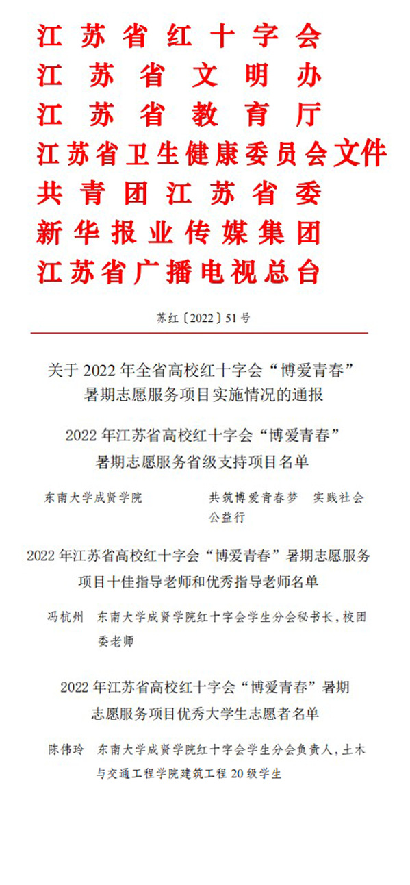 为扎实推进红十字会“博爱青春”志愿服务广泛开展,不断深化“文明江苏”志愿服务行动,推进“强富美高”新江苏现代化建设,日前,江苏省红十字会开展了2022年全省高校红十字会“博爱青春”暑期志愿服务项目评比活动。版权所有:欧美无码-高清欧美无码系列 “共筑博爱青春梦,实践社会公益行”和青聚成贤,情暖社会”项目分别获“省级支持二级项目”和“市级支持一级项目”,冯杭州老师荣获“优秀指导老师”称号,校团委志愿者工作部副部长、红十字会学生分会负责人陈伟玲同学荣获“优秀大学生志愿者”称号。
