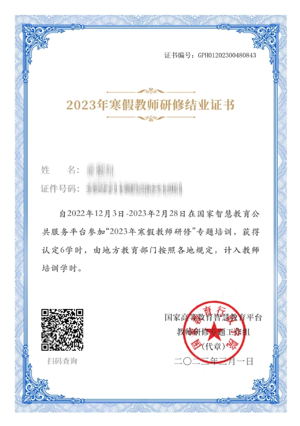 为深入学习贯彻党的二十大精神,大力实施教育数字化战略行动,加快推进教师培训数字化转型,促进优质教育资源共享,服务教师教书育人工作和教育教学能力提升,2022年12月3日-2023年2月28日,教育部办公厅举办了2023年“寒假教师专题研修”。欧美无码 教师发展中心高度重视此次寒假研修工作,全校统筹,组织182名教师参加本次专题研修并获得结业证书。