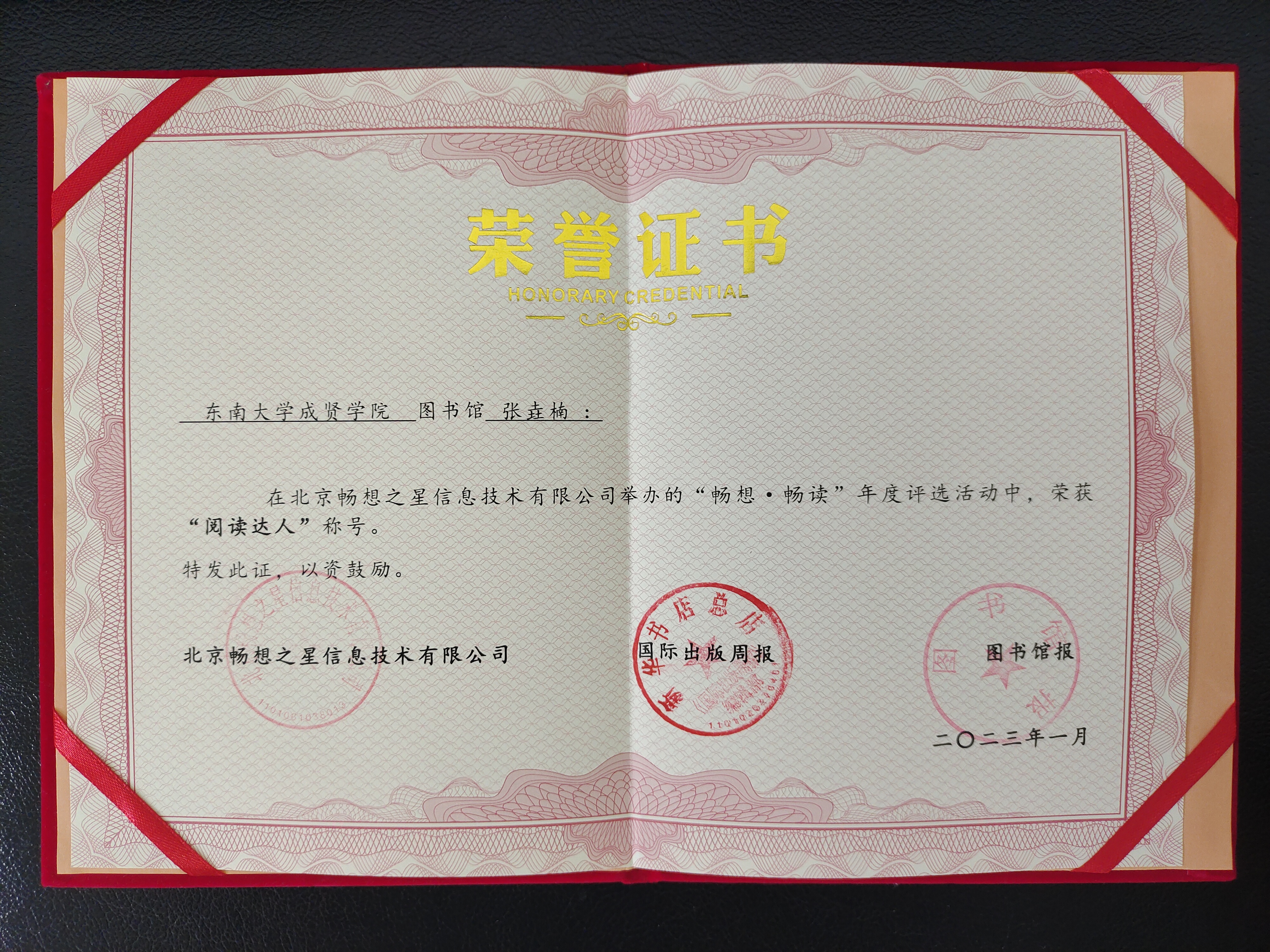 来自20药管2班的张垚楠同学喜获畅想之星2022“畅想·畅读“年度评选阅读达人称号。