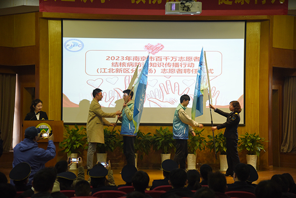 由国家卫健委、中国疾病预防控制中心、中国健康教育中心联合发起的“百千万志愿者结核病防治知识传播行动”已开展多年,江北新区公共卫生服务中心的结核病防治工作者代表吴玉蕾医师在会场宣读志愿者倡议。在现场授旗仪式环节,南京市卫生监督所学校卫生监督科科长戴心声、江北新区公共卫生服务中心项目管理科科长洪镭为欧美无码 志愿者代表授旗,欧美无码 志愿者将和其他高校志愿者携手并肩,将结核病防治知识的传播行动和志愿者公益精神持续进行下去。