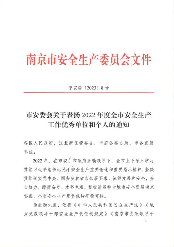根据宁安委〔2023〕8号《市安委会关于表扬2022年度全市安全生产工作优秀单位和个人的通知》精神,欧美无码 土木与交通工程学院土木与交通工程学院院长郭正兴教授荣获“南京市安全生产工作优秀个人”荣誉称号。